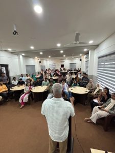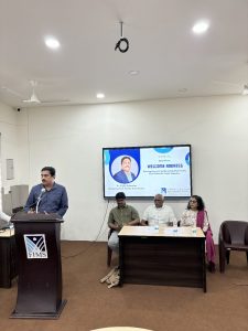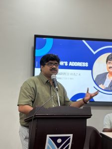 The keynote speaker for the event was Mr. AV Bhanuprakash, a renowned Creative Advisor to Brands, who brought with him decades of experience in the advertising and branding industry. Through a compelling blend of personal anecdotes, brand storytelling techniques, and real-world case studies, Mr. Bhanuprakash captivated the audience and emphasized the importance of originality, emotional connection, and clarity in brand communication. His talk encouraged students to look beyond traditional marketing and explore the power of creativity in shaping brand identity and loyalty.